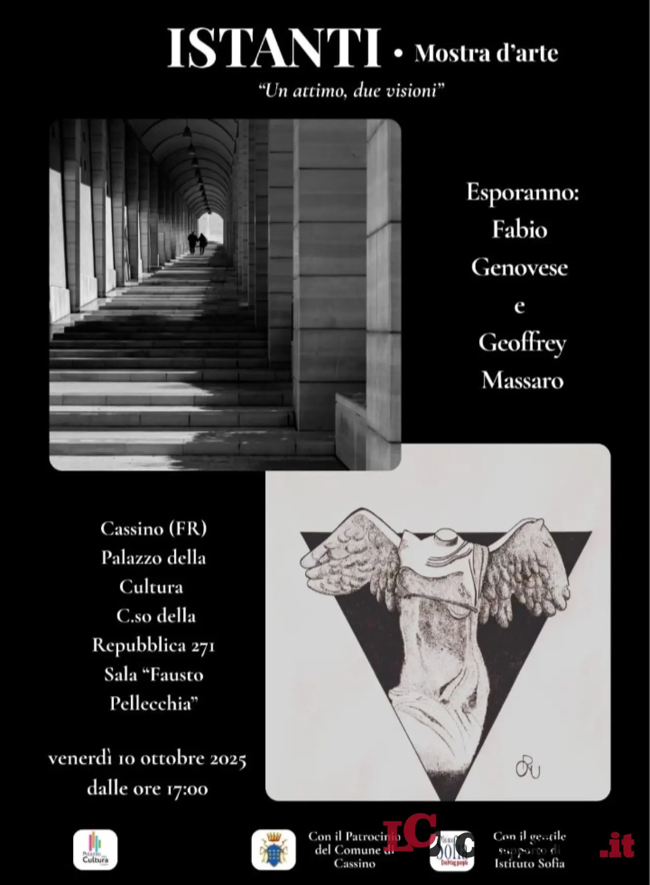 Verrà presentata venerdì 10 ottobre la mostra d’arte “Istanti. Un attimo due visioni” alle ore 17 presso il Palazzo della Cultura di Cassino. Esporranno Fabio Genovese e Geoffrey Massaro.