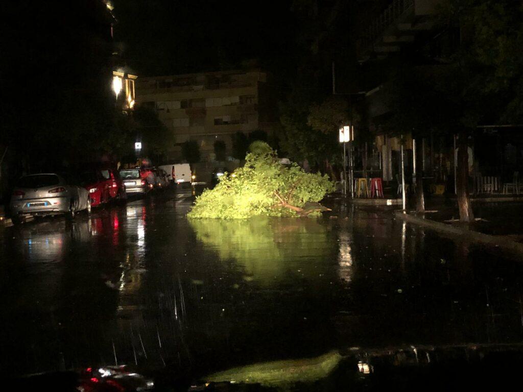 Decine le chiamate ai vigili del fuoco per alberi caduti su strade dell'immediata periferia. Il centro cittadino è attualmente senza energia elettrica, bar e locali al buio, così come le abitazioni dei residenti. Il peggio sembra passato per ora, anche se la gente in giro protesta per la mancanza di energia elettrica che si protrae oramai da circa un'ora. Intensa anche l'attività elettrica: in poche ore, centinaia di fulmini hanno illuminato a giorno strade e piazze, seguiti da un fragore assordante.