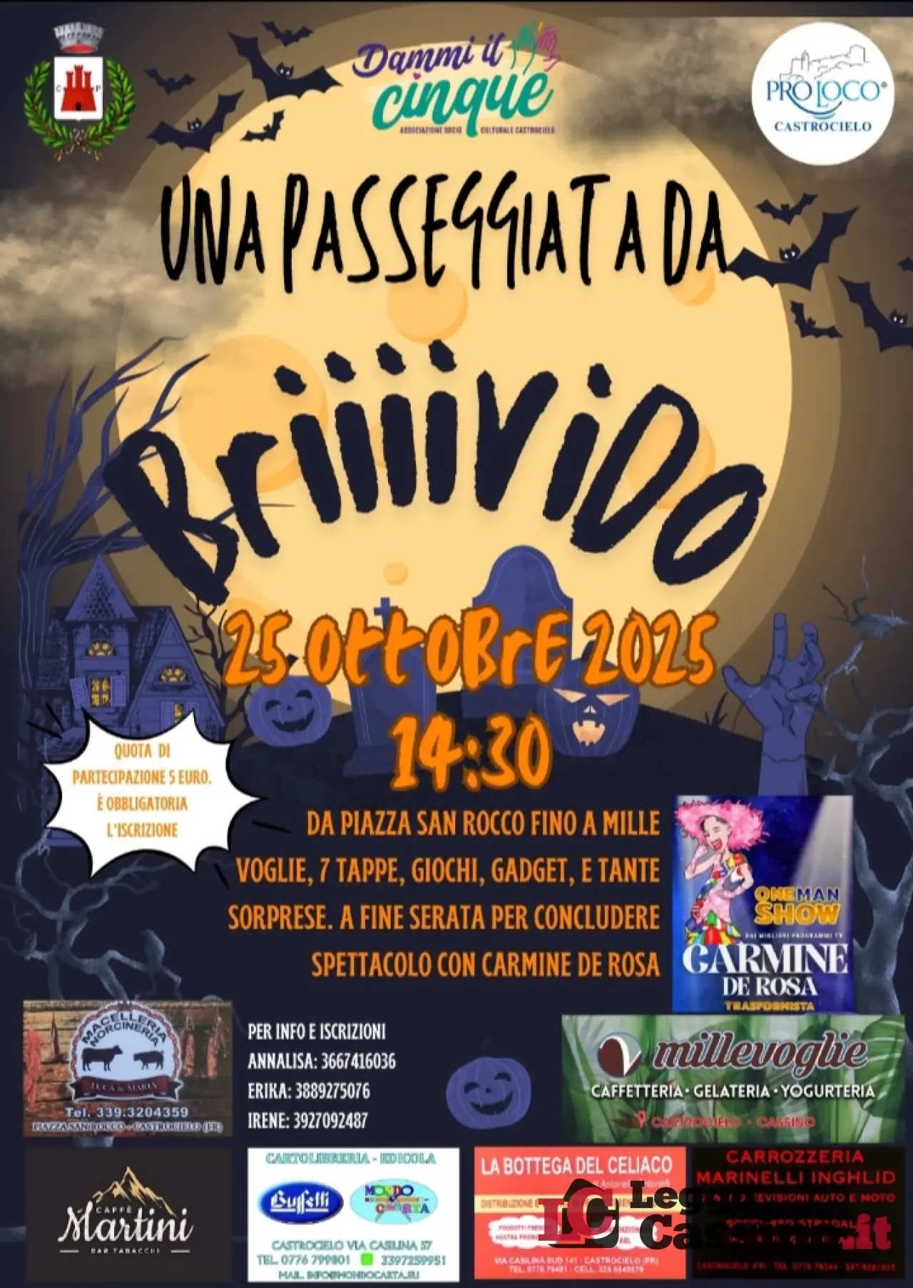 Attualità - Già sabato 25 pomeriggio, a partire dalle 14:30, ci sarà ‘Una passeggiata da brividi. L’iniziativa è organizzata dall’associazione Dammi il cinque con la collaborazione della Pro Loco di Castrocielo e del Comune.