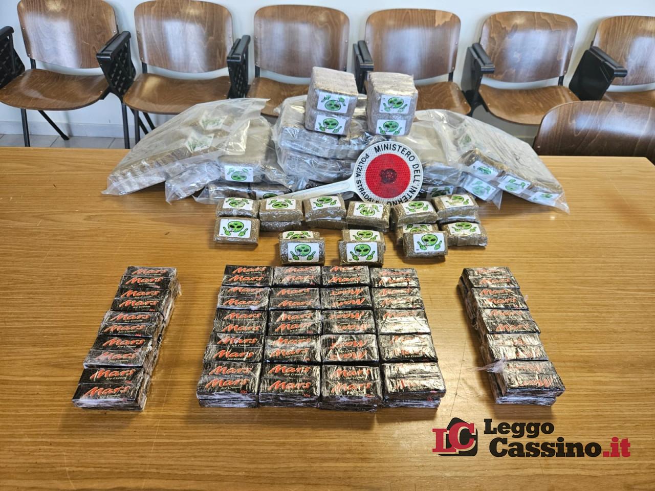 Le analisi confermavano che la sostanza rinvenuta era hashish per un peso pari a kg.26,385. L’ uomo veniva arrestato per detenzione e traffico di sostanza stupefacente e condotto presso la casa circondariale di Cassino a disposizione dell’Autorità Giudiziaria
