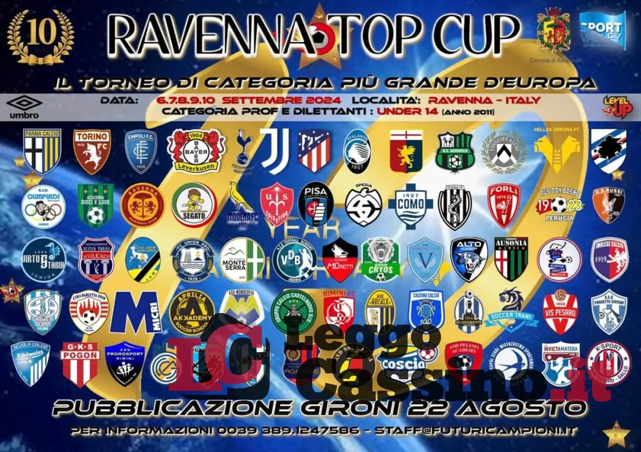 Si alleneranno invece al campo 2 i “pulcini”, ovvero i nati nel 2014 e 2015 e gli esordienti, classe 2012 e 2013. Gli allenamenti sono previsti nei giorni di lunedì, mercoledì e giovedì dalle 17 alle 18.30. “Ringrazio Sebastiano Di Palma che durante quest’estate - spiega Francesco Iemma - si è impegnato ad organizzare i tornei per il Cassino calcio e a tal proposito va evidenziato cha la nostra categoria under 14 elite capitanata dal mister Alessandro Liguoro ha partecipato al ‘Ravenna Cup’, uno dei tornei più importanti d’Italia. A tale torneo partecipano infatti squadre importanti come la Juventus, il Bayern Leverkusen, Lazio, Roma, Fiorentina, Atalanta, Atletico Madrid e altre”.