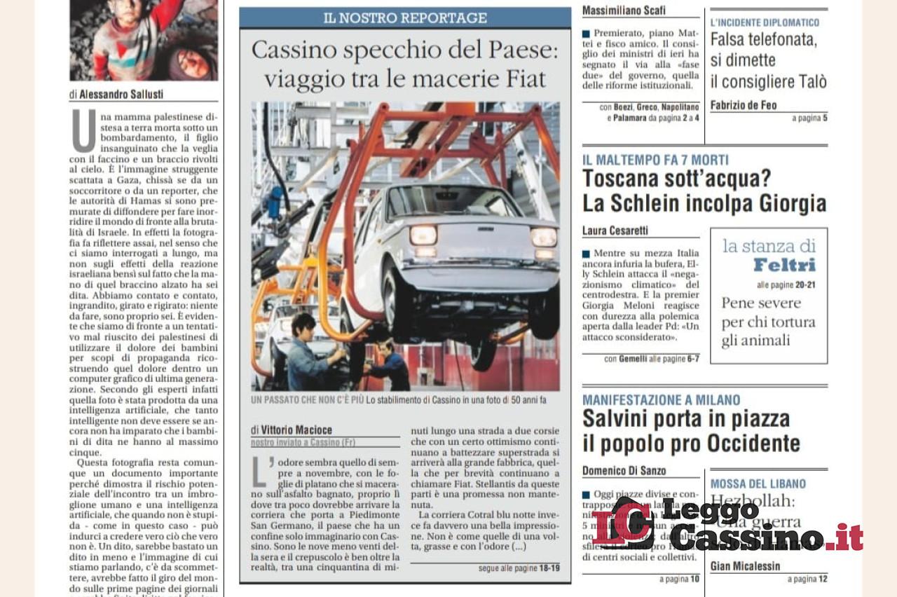 Lo stabilimento "Stellantis" di Piedimonte San Germano, con i suoi problemi, le sue scelte, le sue prospettive future, ma anche il dibattito politico che continua a scaturire, diventa lo specchio del Paese. Questo perlomeno, secondo "Il Giornale" quotidiano nazionale vicino al centro destra che, prima si chiamava "Il giornale d'Italia" ed aveva tra i suoi fondatori anche Indro Montanelli. Alla vecchia "Fiat" invece, è andato Vittorio Macioce, penna di punta del quotidiano milanese.