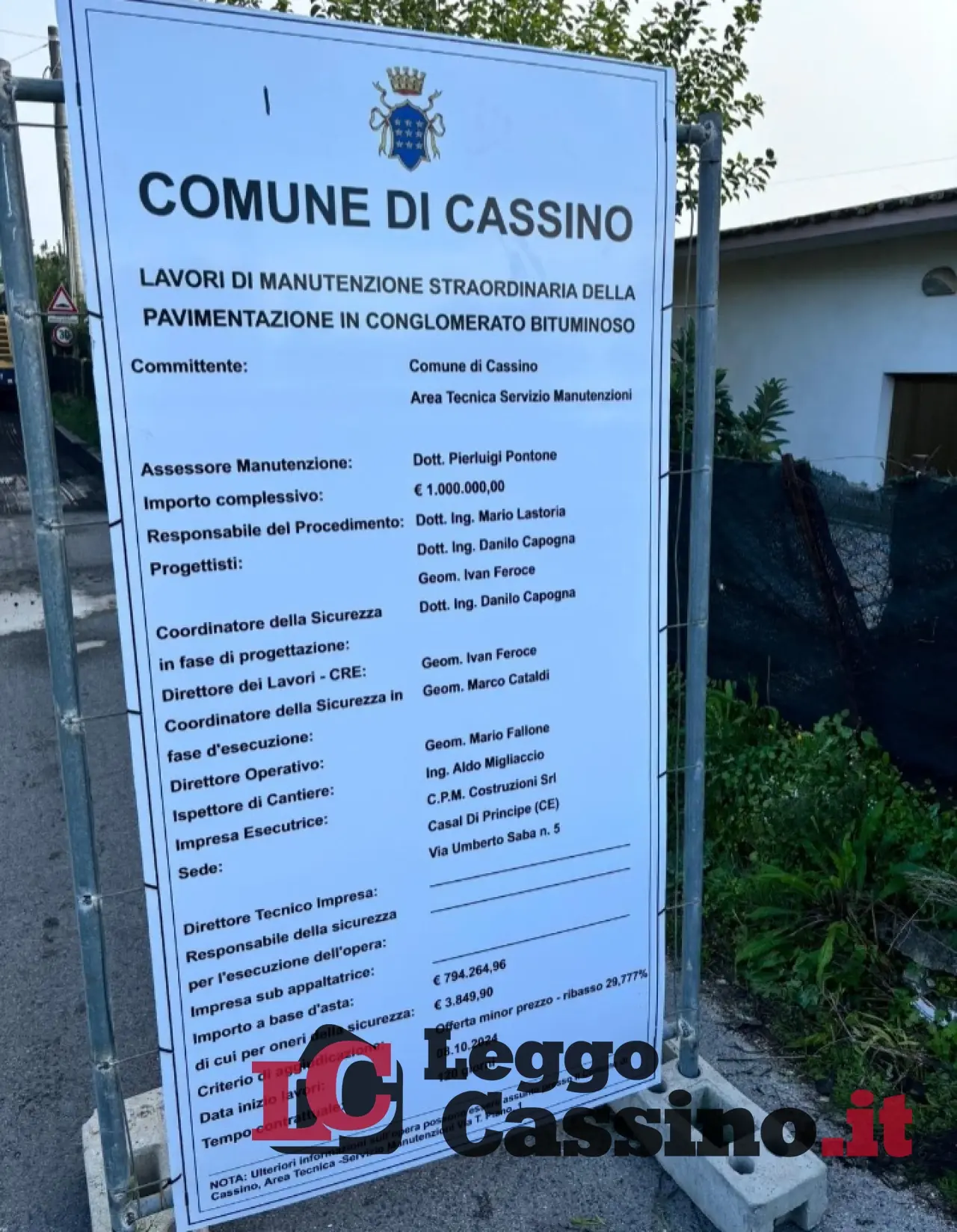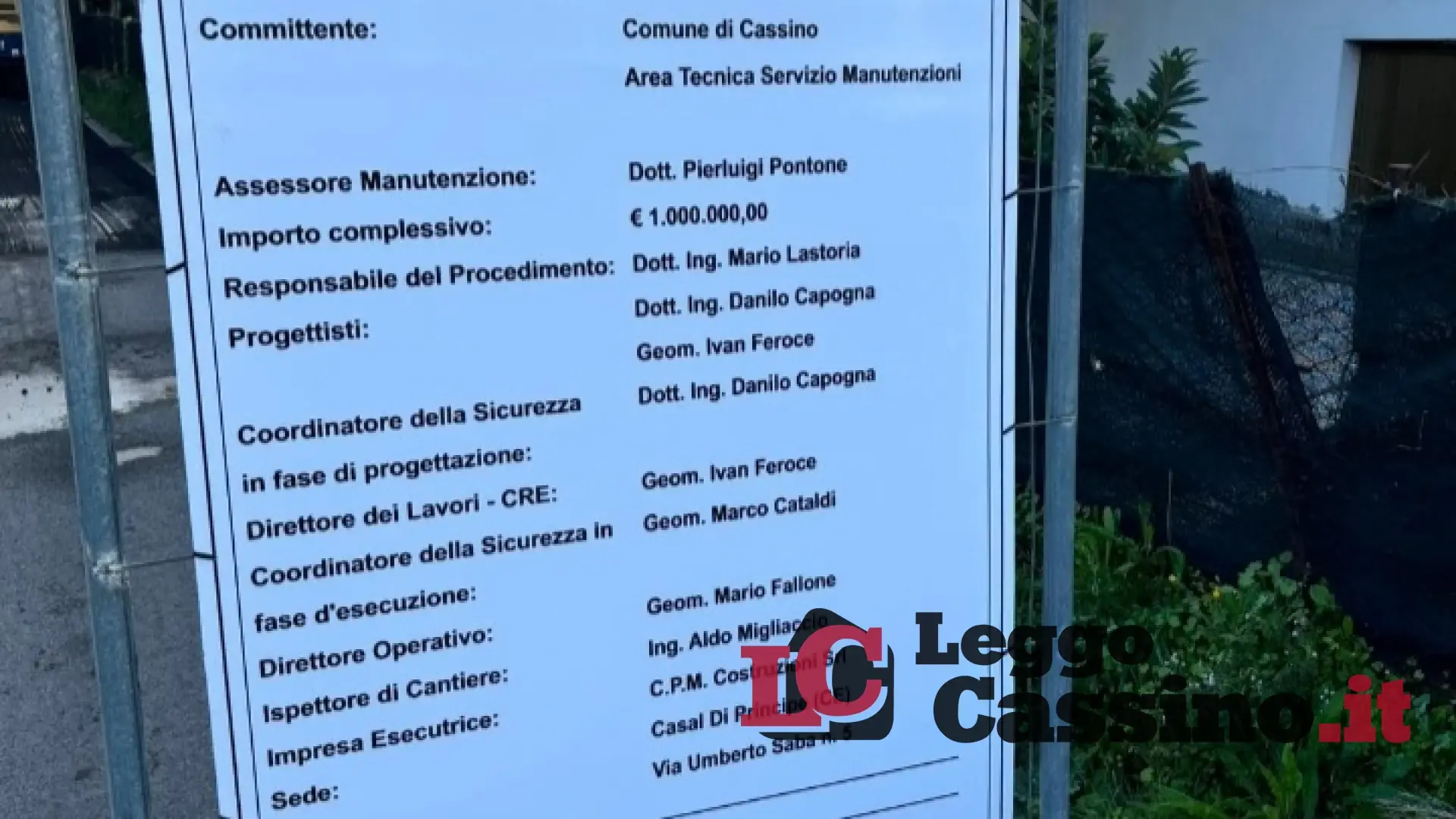 Continua intanto l'opera di efficientamento della pubblica illuminazione, con la sostituzion dei corpi illuminanti, in via Angelosanto, via Polledrera, strada Mezzanotte, via Panaccioni, via Selvone nei pressi della parrocchia, via Polledrera, via Torino, via Guado del Lupo, Colle s. Germano, via Tribunale, piazza Marconi, provinciale 81 e via Ausonia".